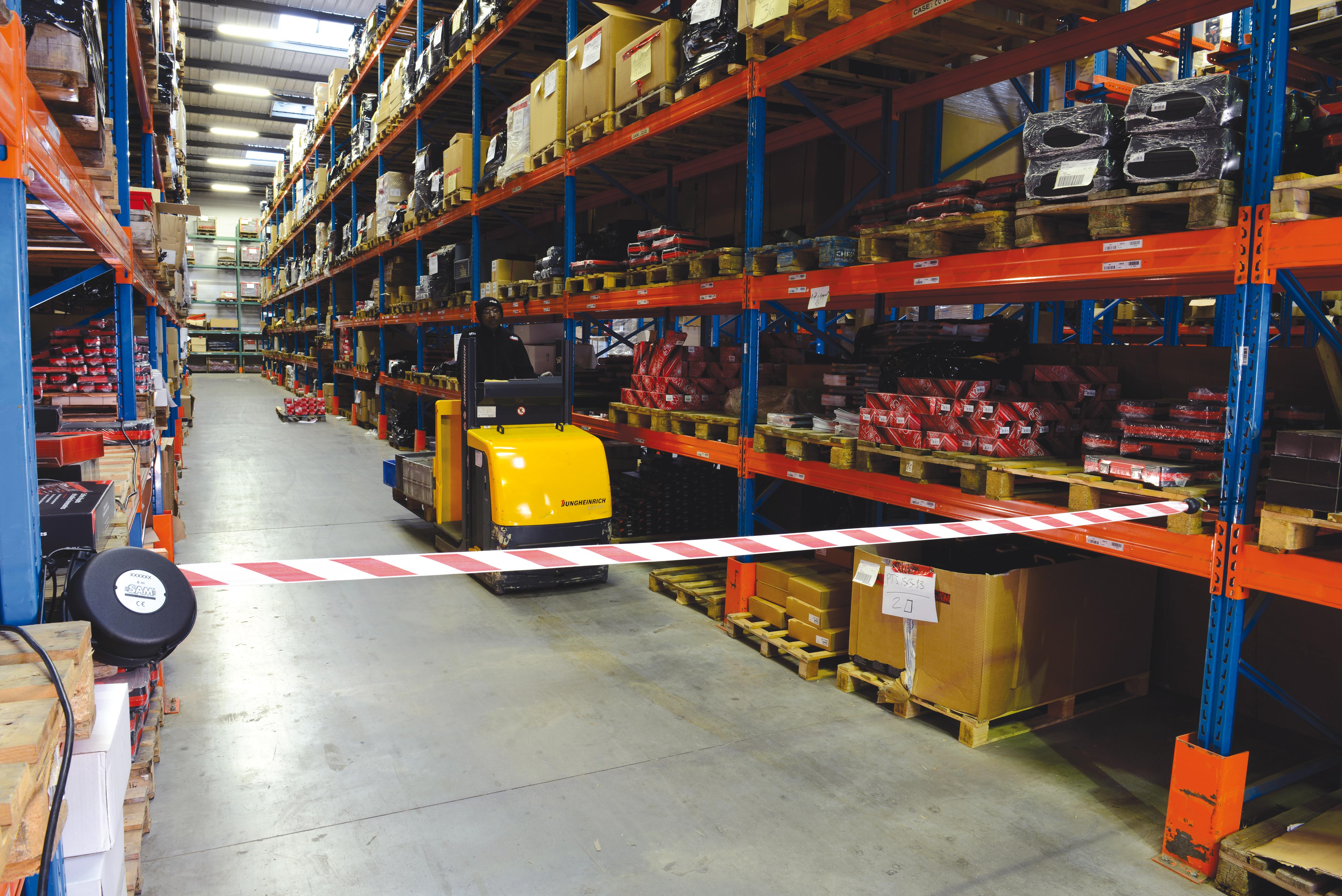 Haspel om een tijdelijke interventiezone af te bakenen of een gevaarlijke plaats te beveiligen. Metalen haak voor geïntegreerde bevestiging.