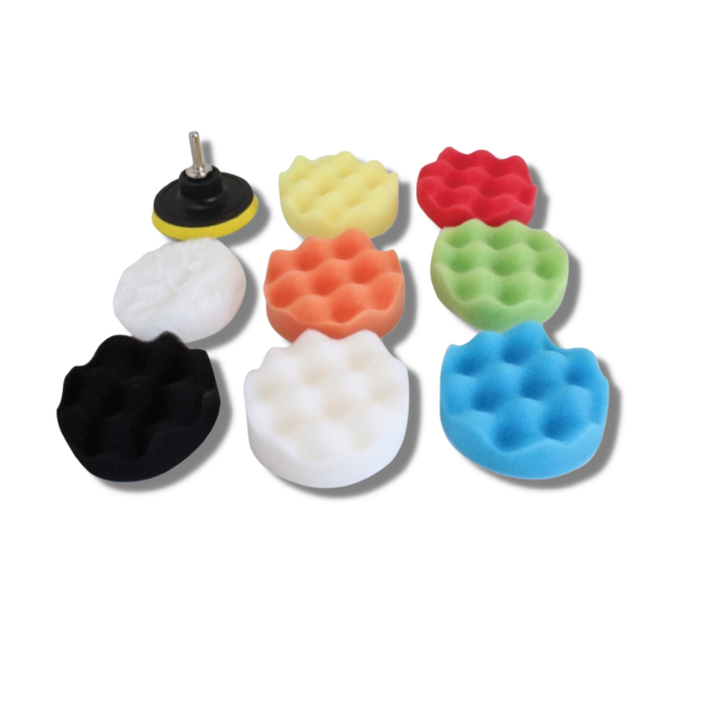 LB Tools polijstset met 80mm polijstschijven met velcro steunschijf en boormachine adapter en 8 stuks polijstpads 10-delig