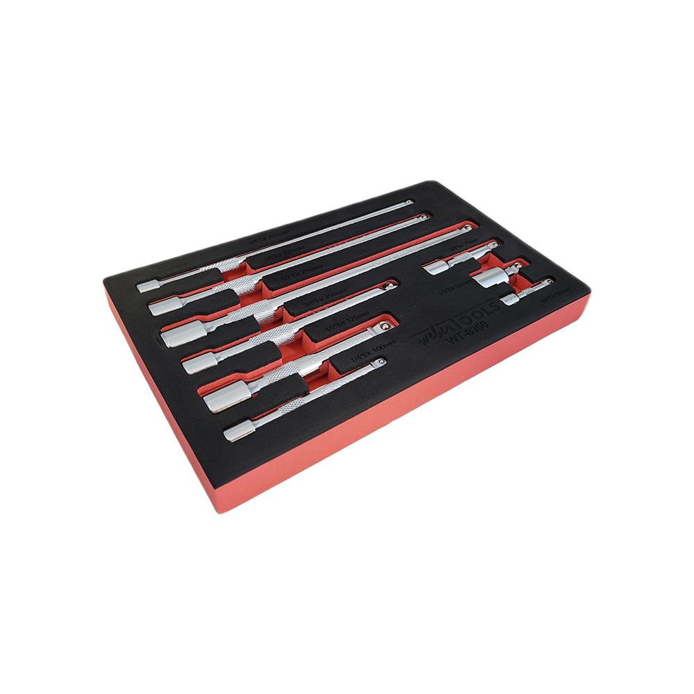 Weber Tools 1/4'' & 3/8'' & 1/2'' verlengstukken set. Wordt geleverd in een olie- en benzine bestendig foam inlay. De verlengstukken zijn voorzien van een wobble uitvoering.