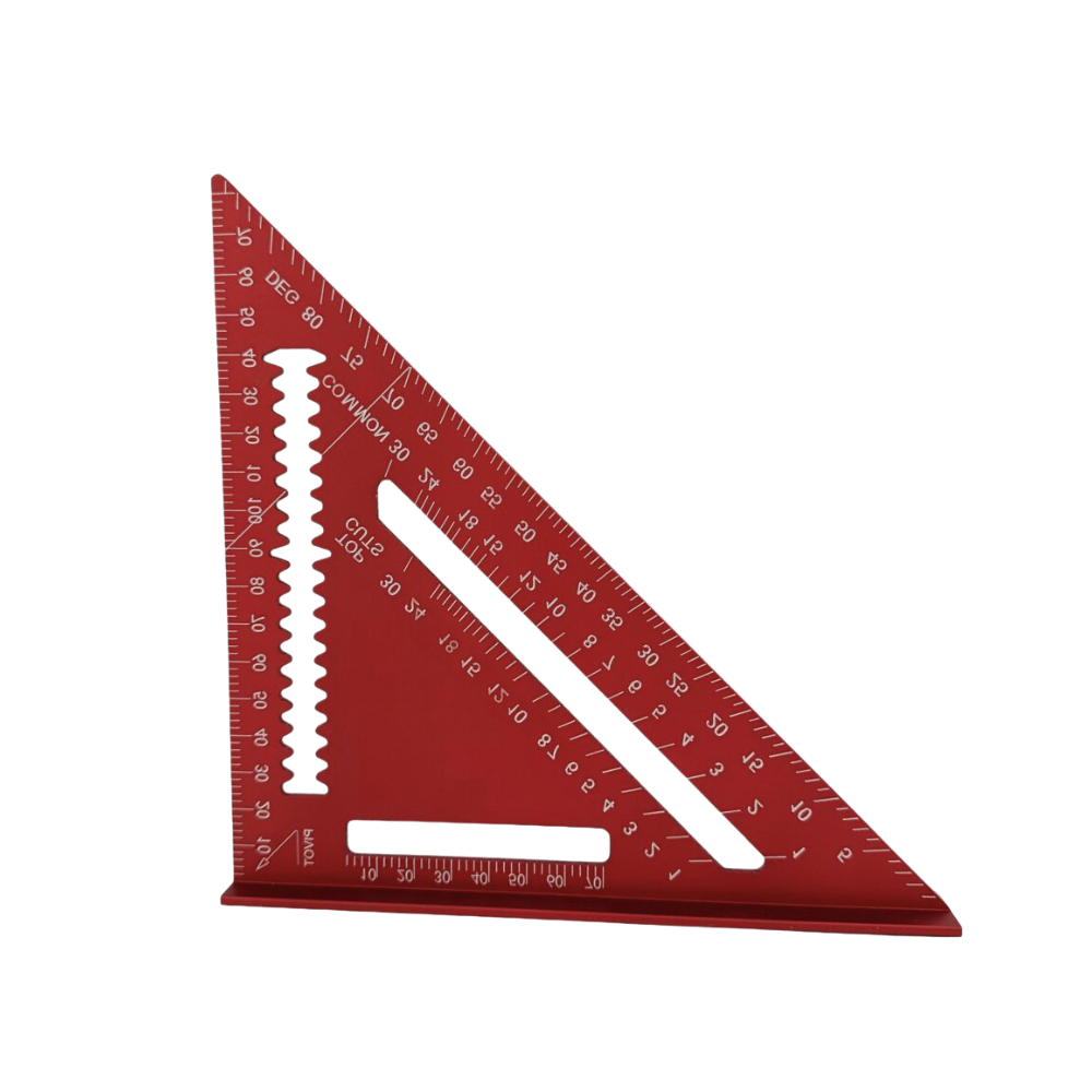 Profesionele stevige en duurzame aluminium speedsquare. Een onmisbaar hulpmiddel in elke timmerwerkplaats, op de bouwplaats en in een thuiswerkplaats.