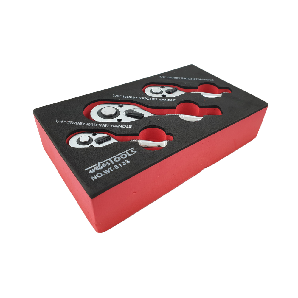 WT-8133 WEBER TOOLS extra korte Stubby ratel set 1/4'' & 3/8'' & 1/2'' 72-tands