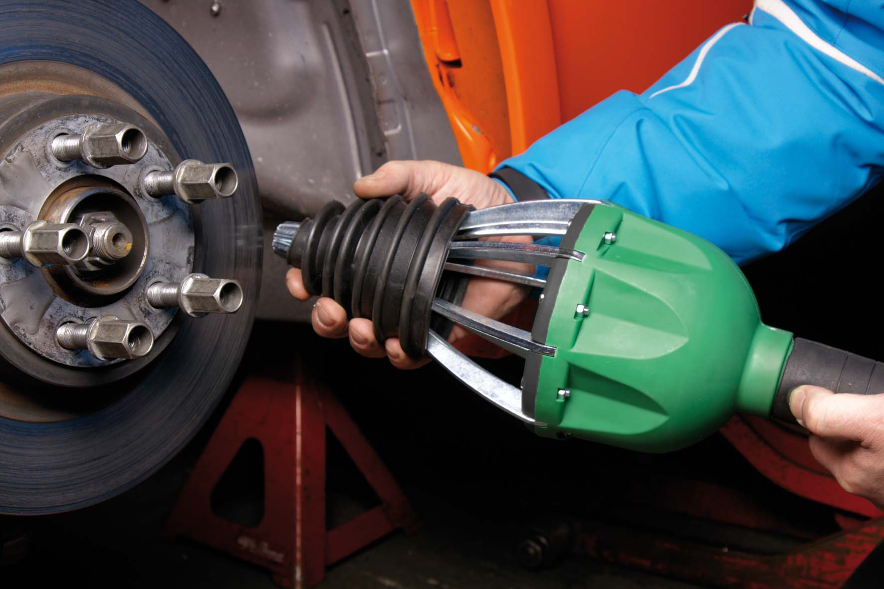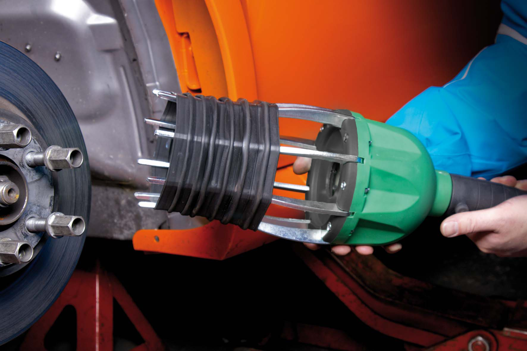 Als u ooit de ashoezen van de homokinetische koppelingen van een auto heeft moeten vervangen, weet u hoe moeilijk het is om de ashoes op de aandrijfas te plaatsen. Na demontage van het wiel en de wielnaaf, kunnen wij u helpen bij de montage van de manchet. Dit gereedschap, dat door perslucht wordt bediend, opent moeiteloos en gelijkmatig de flexibele ashoes, waardoor het mogelijk is de hoes te vervangen zonder demontage van de aandrijfas. De Bootgun is voorzien van een overdrukbeveiliging om te zorgen voor een maximale veiligheid.Duurzaamheidstesten onder variabele omstandigheden hebben aangetoond dat dit gereedschap 100% veilig en betrouwbaar is. De Bootgun voldoet aan alle geldende industriele veiligheidsnormen.