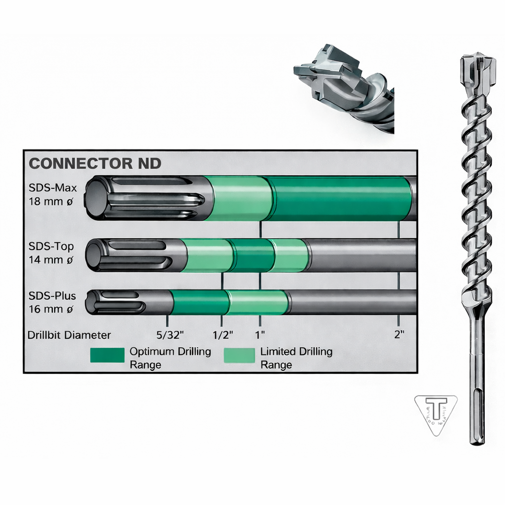 Let op: Alleen geschikt voor SDS-Top boorhamers (niet compatibel met SDS-Plus of SDS-Max) Controleer vóór aankoop altijd het type aansluiting van uw boorhamer om teleurstellingen te voorkomen.