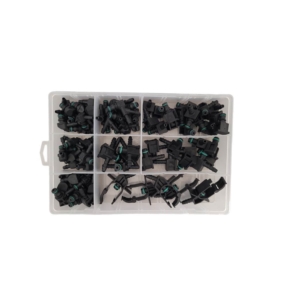 Assortiment connectoren voor diesel retour leiding. Geschikt voor injectoren van Bosch en Delphi. Gemaakt van FKM (fluorkoolstofrubber)