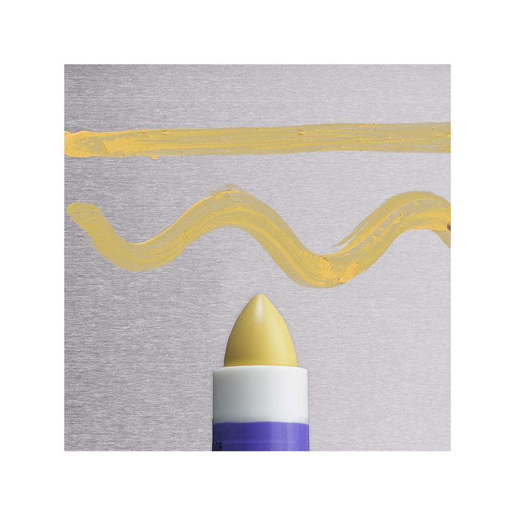 Markeert door stof en roest, op ruwe en gladde ondergronden, binnen of buiten, en zelfs in water. Ideaal voor gebruik op hout, textiel & canvas, kunststof, staal & ijzer, rubber, karton, glas, glasvezel en beton. Te gebruiken in de bouw, bij lassen en fabricage, op pijpleidingen, bij boorwerkzaamheden, op assemblagelijnen, autobanden en voorruiten, bij klimaatsystemen en sanitairsystemen, of met sjablonen. Droogt binnen enkele minuten, is na droging permanent, en vrijwel geurloos.