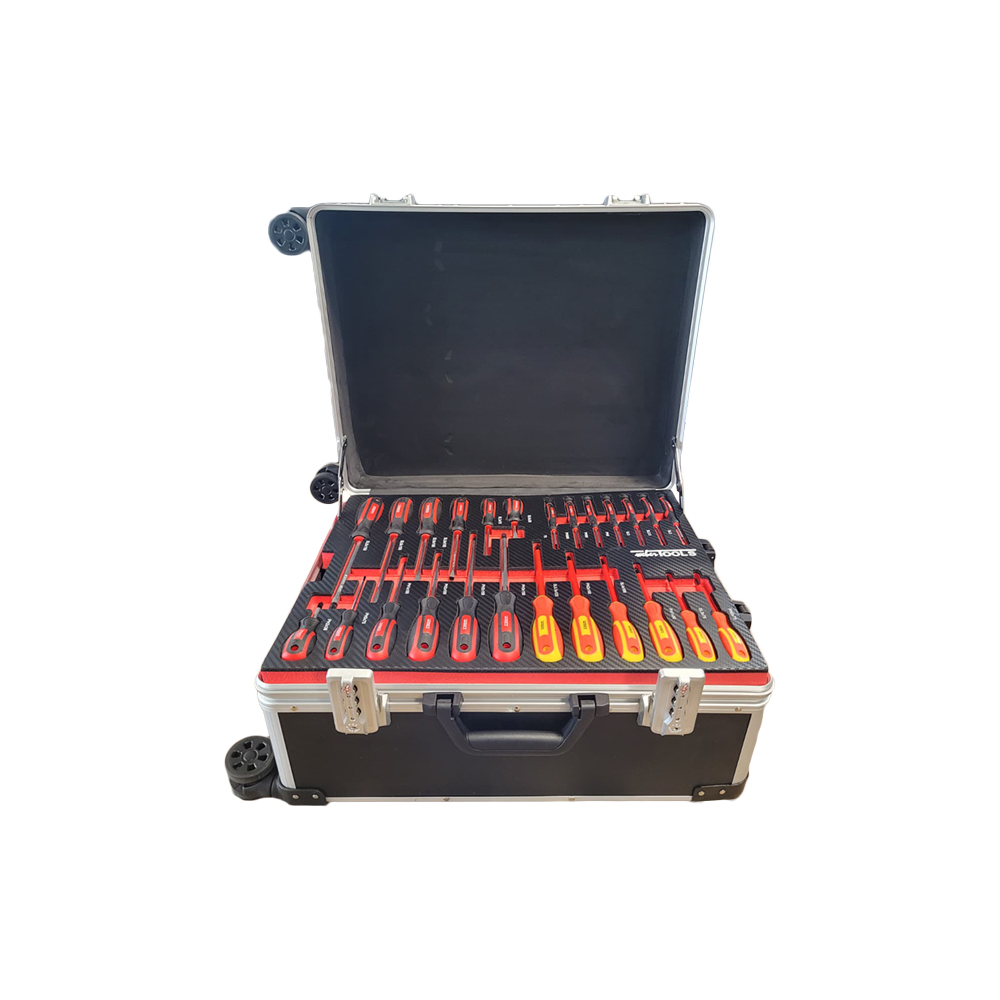De hoogwaardige aluminium gereedschapskoffer is voorzien van vier zwenkwielen voor optimale mobiliteit en bevat een complete set van 139 gereedschappen, overzichtelijk opgeborgen in vier foam inlays. Met een afmeting van 50 × 39 × 23 cm biedt de koffer een compacte maar ruime oplossing.
